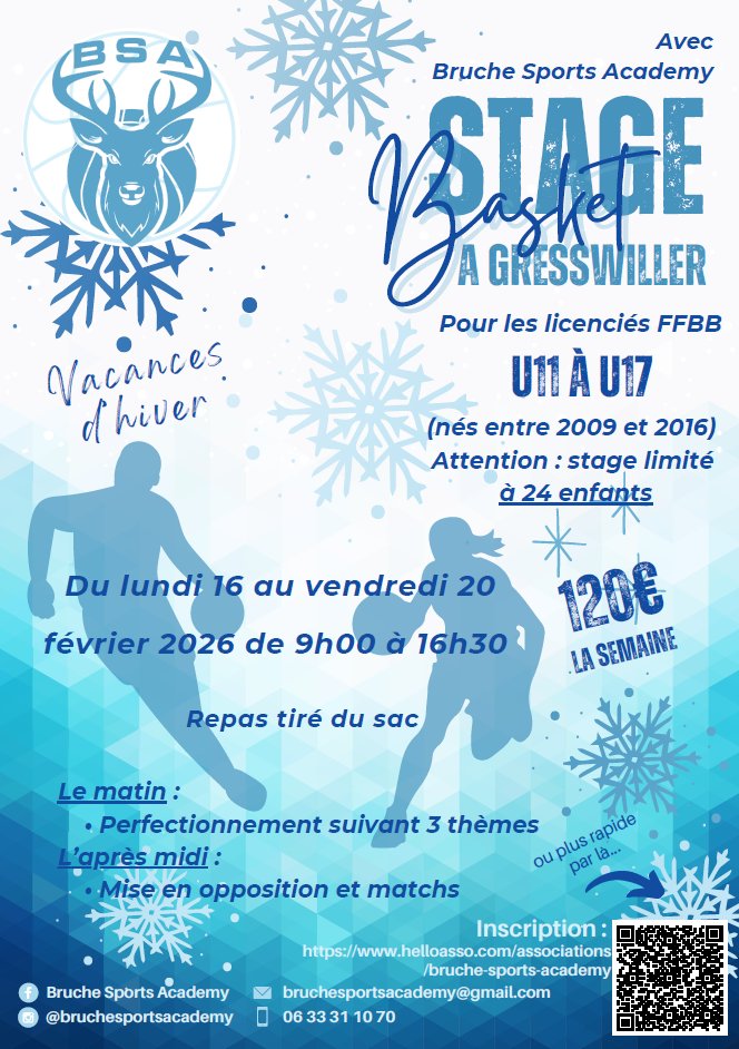 🏀 Bruche Sport Academy organise un stage de perfectionnement au basket pendant les vacances d'Hiver🏀