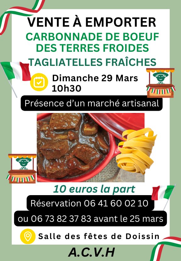 L’association ACVH vous propose une délicieuse carbonnade de bœuf des Terres Froides accompagnée de tagliatelles fraîches 🥩🍝