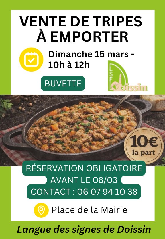L’Association de la Langue des Signes de Doissin organise une vente de tripes à emporter.