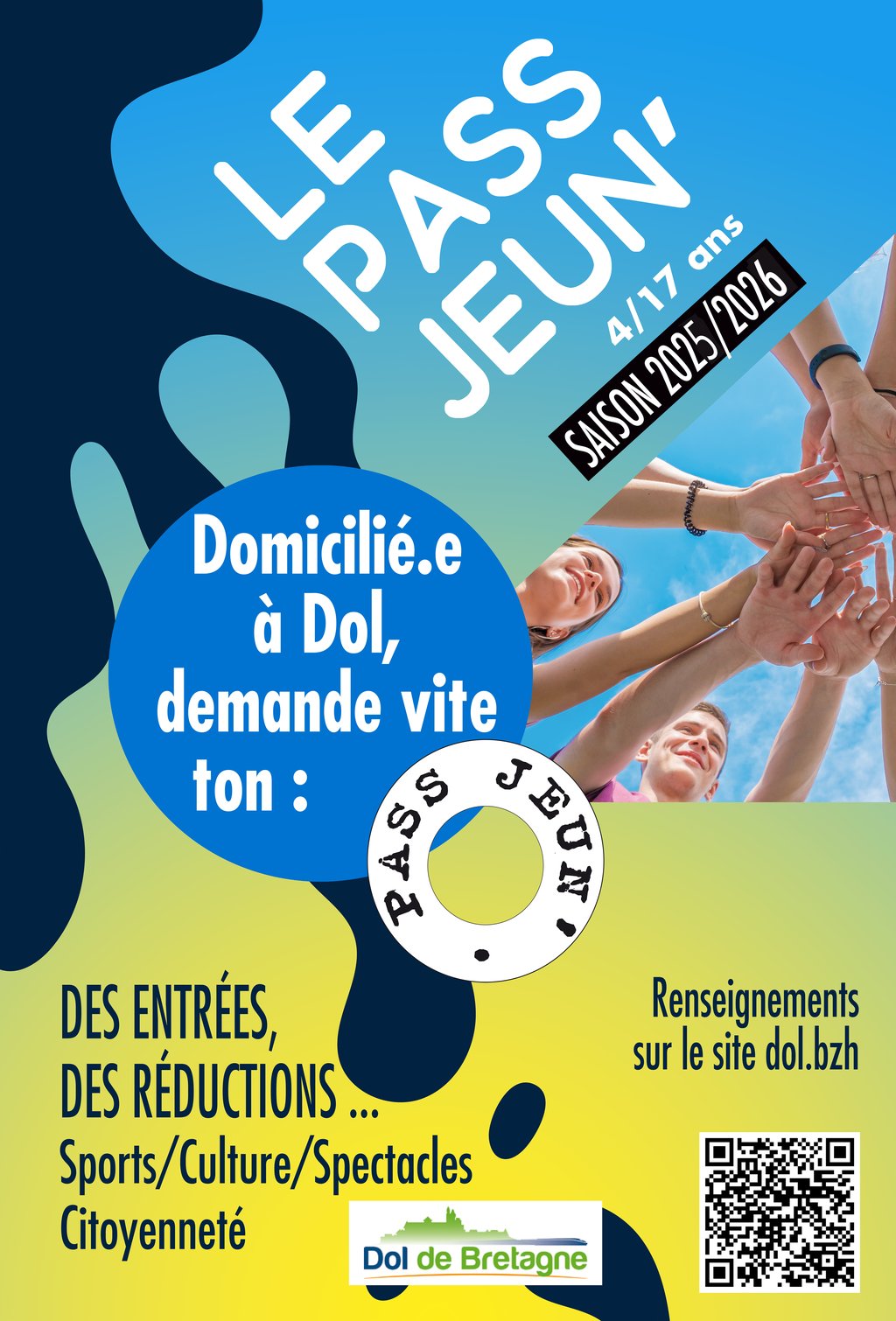 - 2 chèques de 10 € pour l’adhésion à une association doloise conventionnée (identifiable par le logo Pass Jeun’)