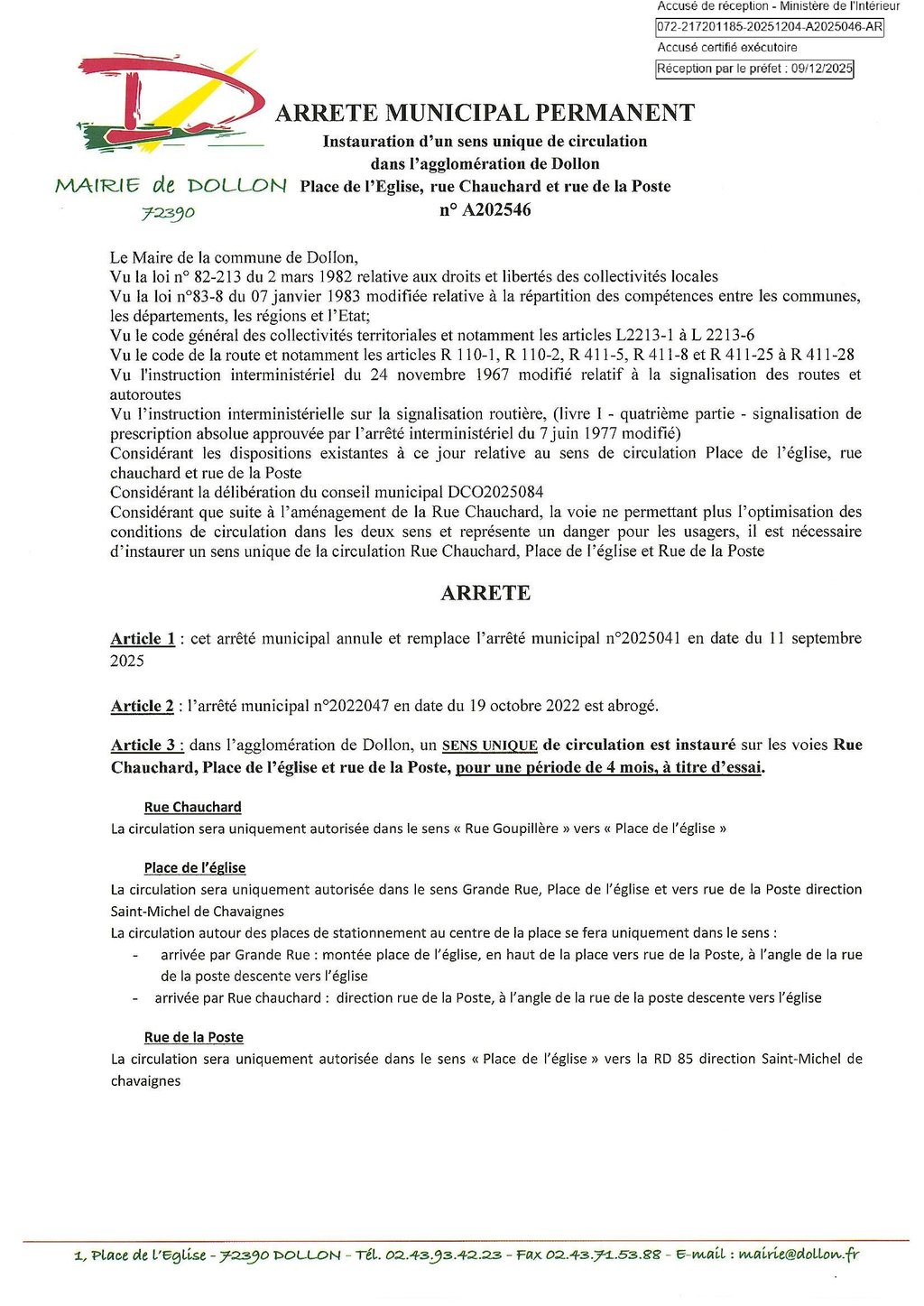 ARRÊTÉ MUNICIPAL POUR NOUVEAU SENS DE CIRCULATION PLACE DE L'ÉGLISE, À PARTIR DE MERCREDI 17 DÉCEMBRE.