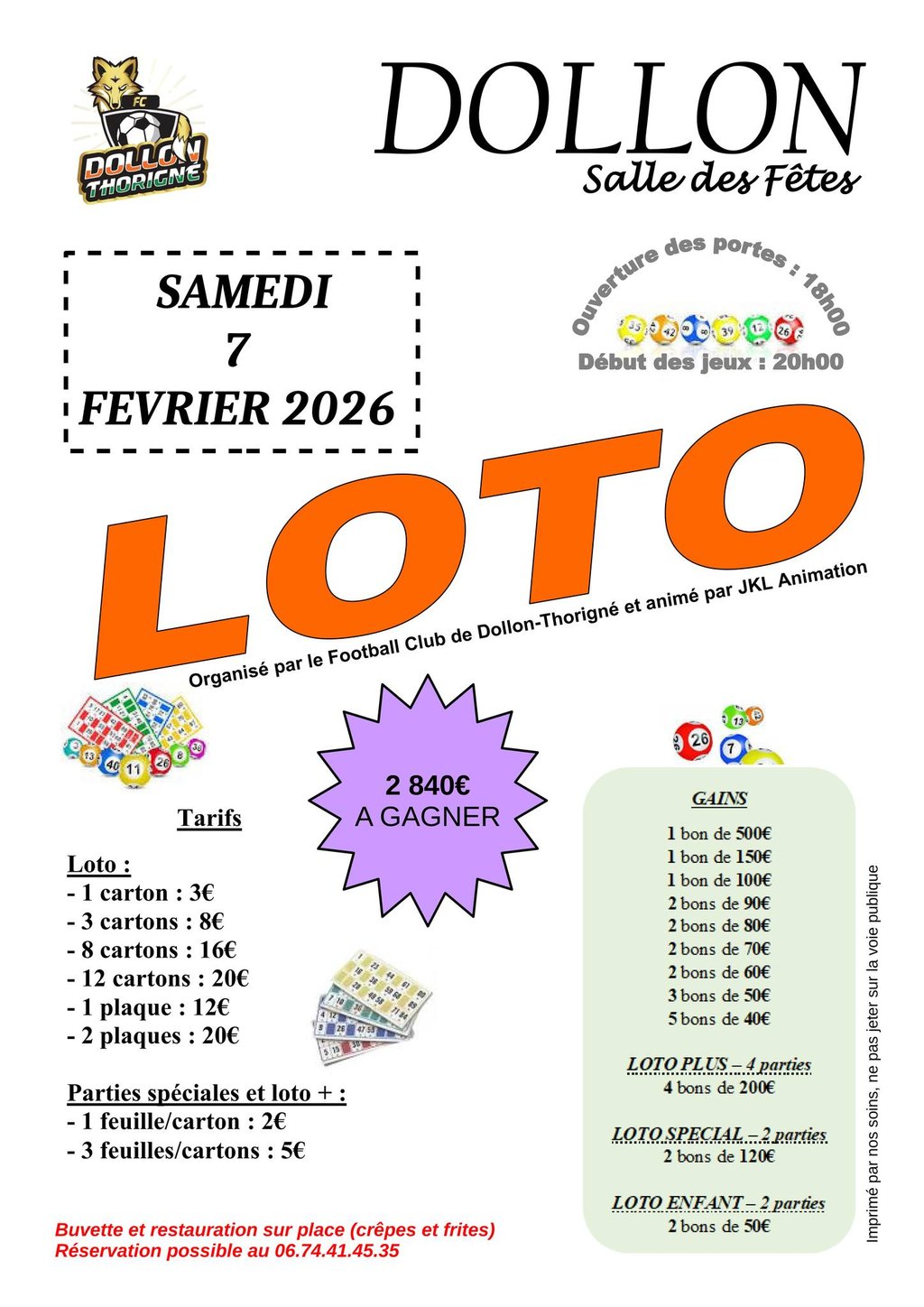 Marquez bien la date dans vos agendas : le samedi 7 février 2026, on transforme la Salle des Fêtes de Dollon en temple de la chance !