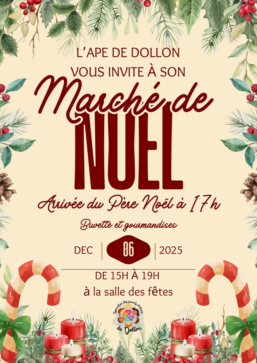 Samedi 6 décembre, de 15h à 19h, marché de Noël organisé par l' A.P.E.