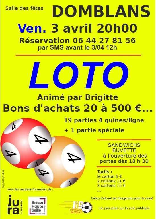 Venez nombreux au loto du club de foot de Domblans.