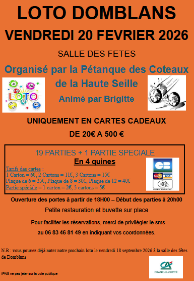 VENDREDI 20 FÉVRIER 2026 SALLE DES FÊTES DE DOMBLANS