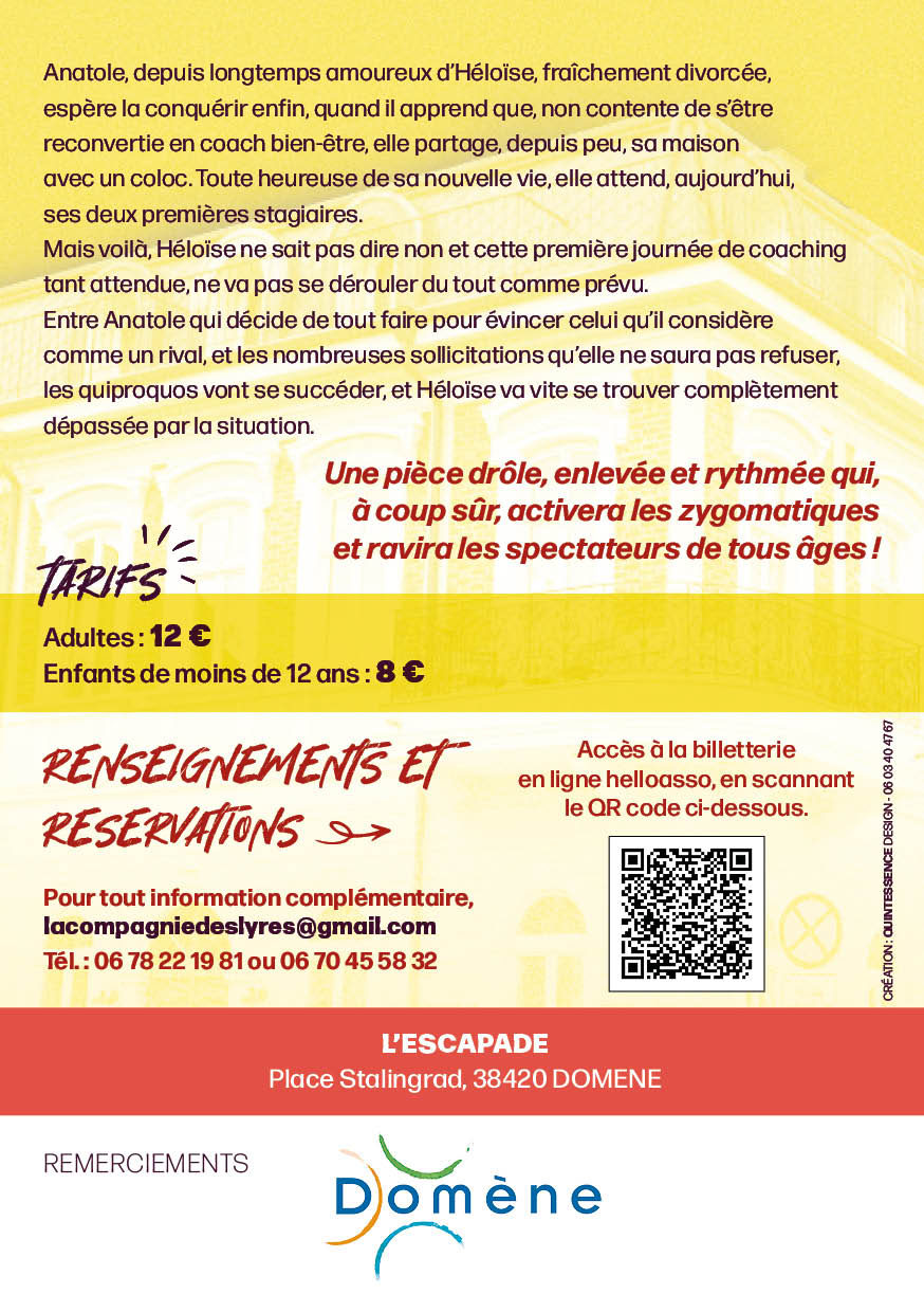 Anatole, depuis longtemps amoureux d’Héloïse, fraîchement divorcée, espère la conquérir enfin, quand il apprend que, non contente de s’être reconvertie en coach bien-être, elle partage, depuis peu, sa maison avec un coloc. Tout heureuse de sa nouvelle vie, elle attend, aujourd’hui, ses deux premières stagiaires.