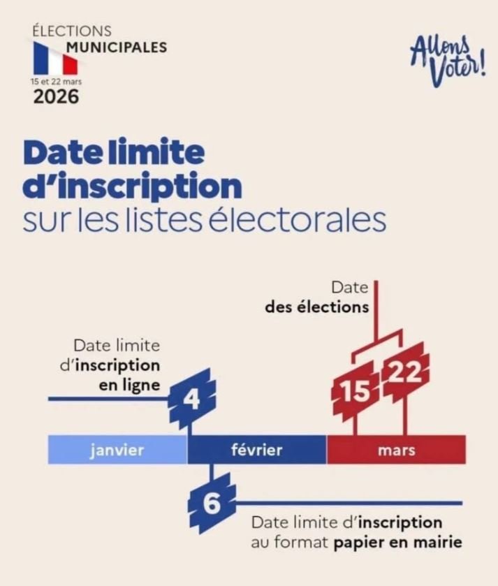 Pour pouvoir voter aux élections municipales du dimanche 15 mars 2026, vous devez être inscrit(e) sur les listes électorales avant la date limite.