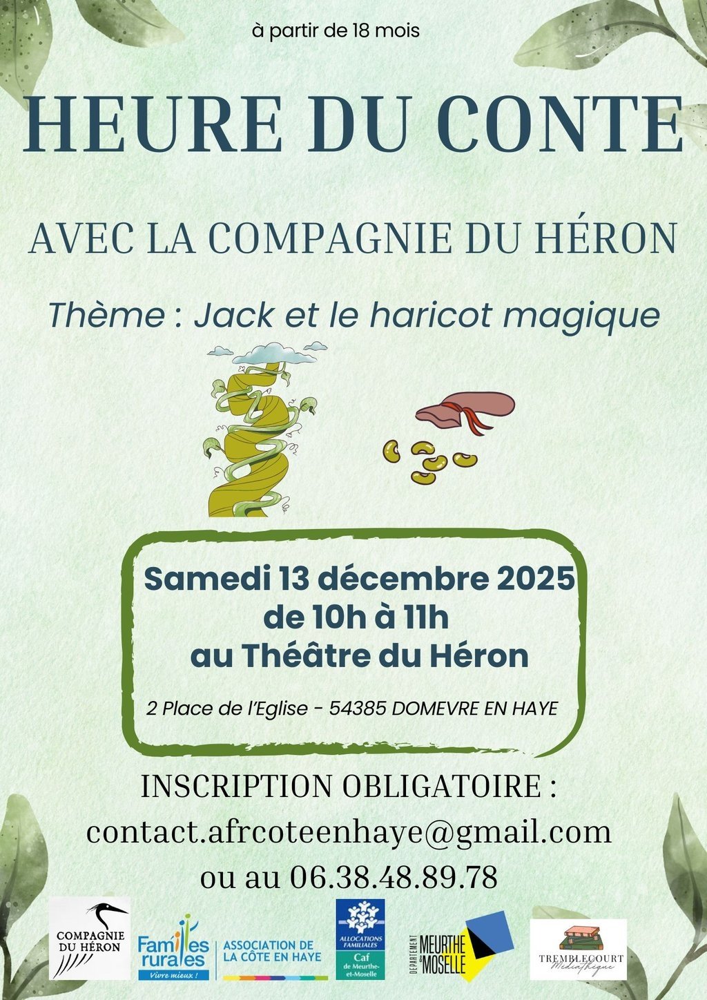Venez découvrir ou redécouvrir l'histoire de Jack et le haricot magique avec la Compagnie du Héron et faire une activité avec votre enfant.