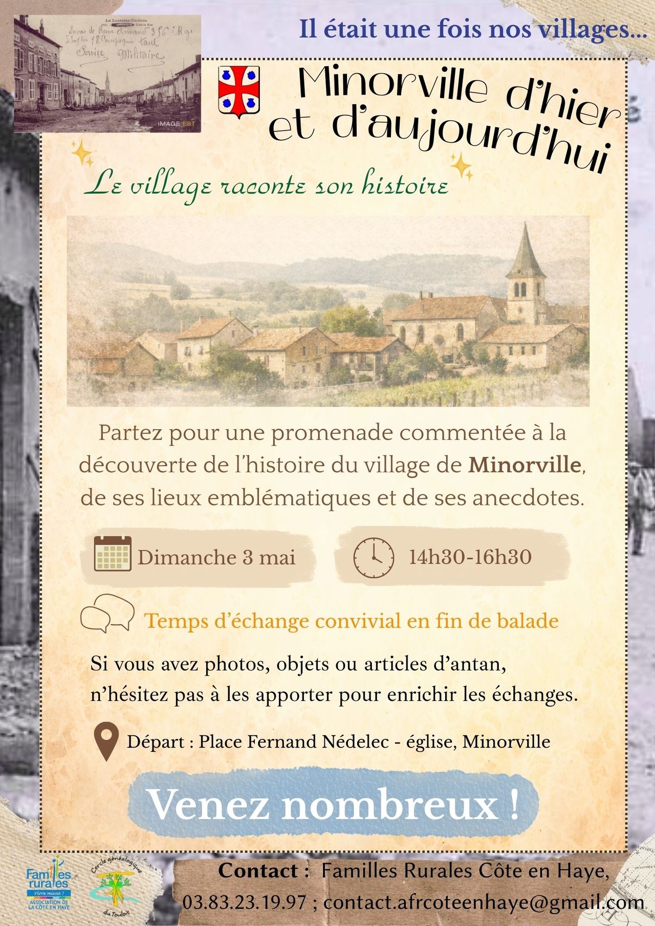 Partez pour une promenade commentée à la découverte de l’histoire de Minorville, de ses lieux emblématiques et de ses anecdotes 🏘️⛪