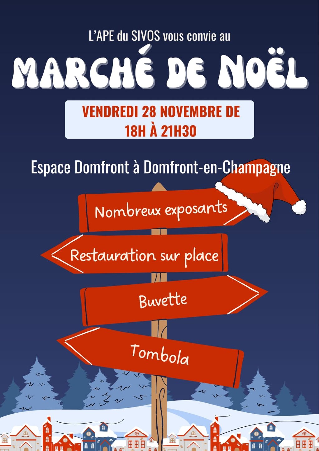 L'Association des Parents d’Élèves organisent son traditionnel marché de Noël le vendredi 28 novembre 2025 à l'Espace Domfront de 18h à 21h30. Au programme : une vingtaine d'artisans créateurs d'univers différents seront présents, deux lutins animeront une tombola avec tirage au sort en fin de marché, et bien sûr, nous aurons le plaisir d'accueillir le Père Noël.