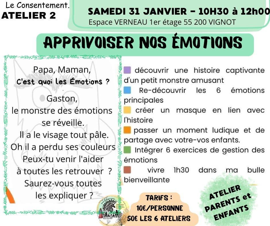 - 31 janvier : Atelier apprivoiser nos émotions (10h30 - 12h) / Atelier apprendre à se connaître (14h - 14h45)