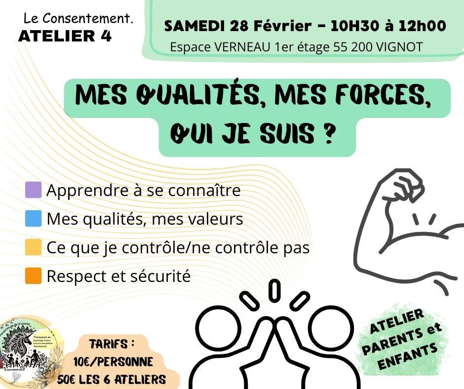 - 28 février : Atelier mes qualités, mes forces, qui je suis (10h30 - 12h)