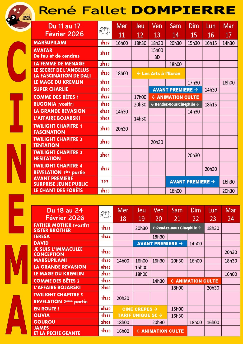 🎬​​​​​​​Programme cinéma - du 11 au 28 février