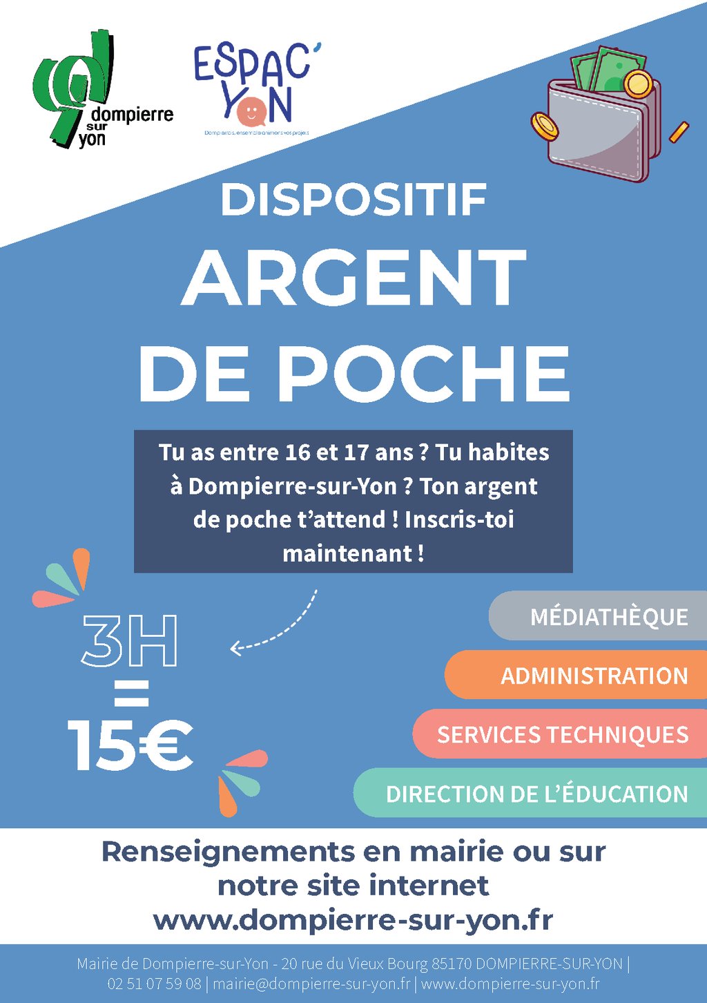 📢 Pour plus d’informations et pour vous inscrire : https://www.dompierre-sur-yon.fr/inscriptions-au-dispositif-argent-de-poche/