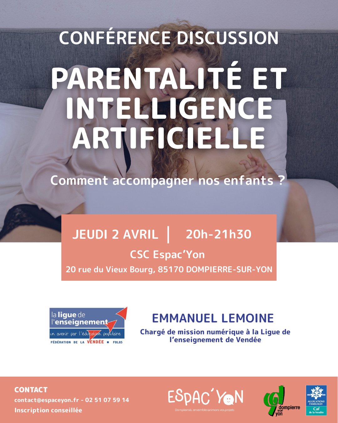 💬 Emmanuel Lemoine, chargé de mission numérique à la Ligue de l’Enseignement 85, viendra échanger sur la thématique des Intelligences Artificielles : comprendre l’IA, usages et enjeux, postures éducatives.