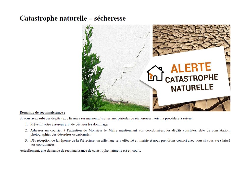 Si vous avez subi des dégâts suites aux périodes de sècheresses, merci de venir le signaler en mairie.