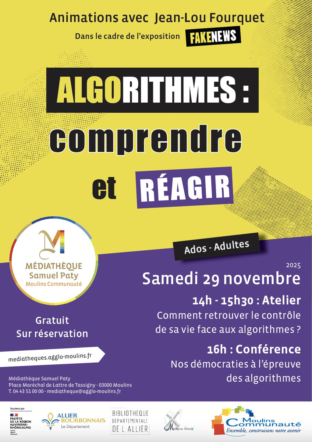 La médiathèque Samuel Paty propose deux animations animées par Jean-Lou Fourquet, dans le cadre de l'exposition Fake News, le samedi 29 novembre :