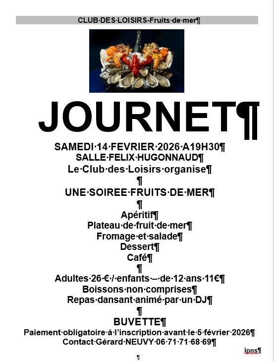 REPAS FRUITS DE MER ORGANISE PAR LE CLUB DES LOISIRS DE JOURNET
