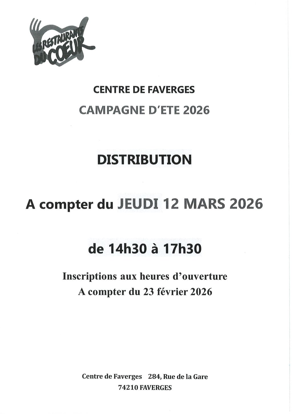 Inscriptions à compter du 23 février 2026, les jeudis aux heures d'ouverture - centre de Faverges (284 rue de la gare 74210 Faverges)