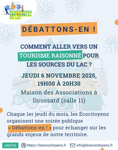 Débattons-en ! « Comment aller vers un tourisme raisonné pour les Sources du Lac ? » le jeudi 6 novembre 2025 à 19h, à la Maison des Associations de Doussard (salle 11)
