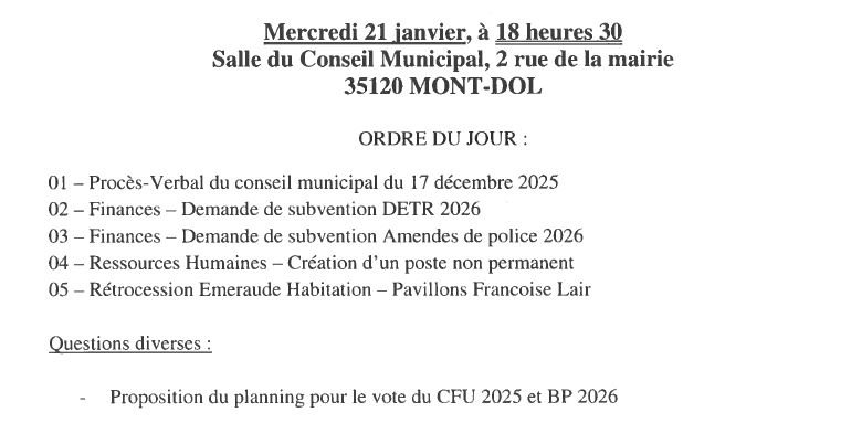Invitation au Conseil municipal du mercredi 21 janvier à 18h30