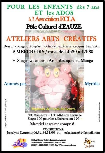Atelier Arts créatifs : Dessin, collages, récup'art, sorties en extérieur (croquis, land'art...) 2 mercredis par mois de 14h30 à 17h30 + stages vacances : Arts plastiques et Manga au Pôle Culturel.