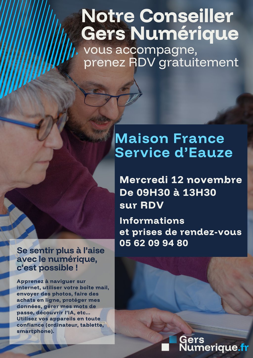 📍 Le conseiller Gers Numérique se déplace au plus près de chez vous pour vous accompagner gratuitement et individuellement sous forme d'atelier.