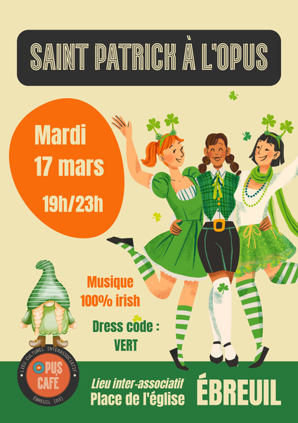 Venez fêter la Saint Patrick à l'Opus Café le JOUR J ! Musique 100% irish et dress code VERT...