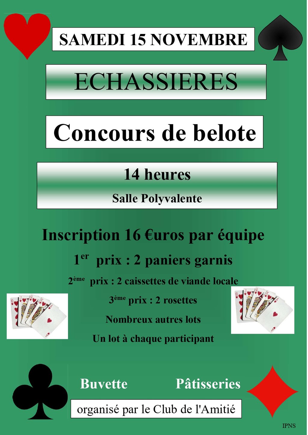CONCOURS DE BELOTE LE SAMEDI 15 NOVEMBRE AU CENTRE SOCIOCULTUREL