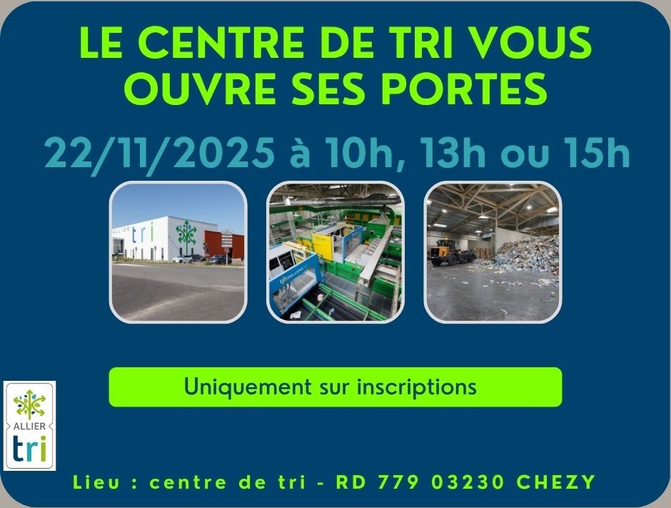 Le centre de tri départemental ALLIER Tri organise une journée portes ouvertes le samedi 22 novembre 2025 :