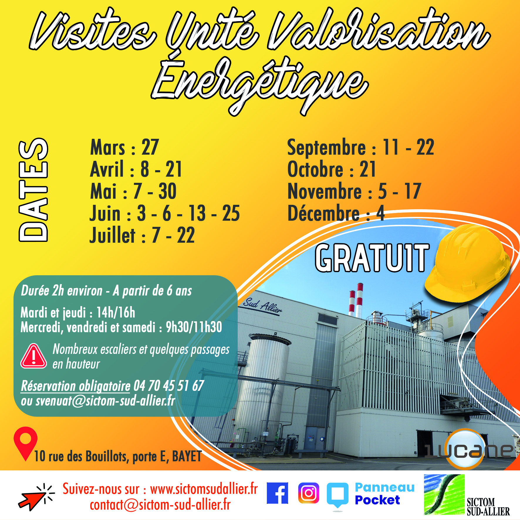 Le SICTOM Organise des visites guidées proposées gratuitement pour découvrir l’Unité de Valorisation Energétique de Bayet pour l’année 2026.