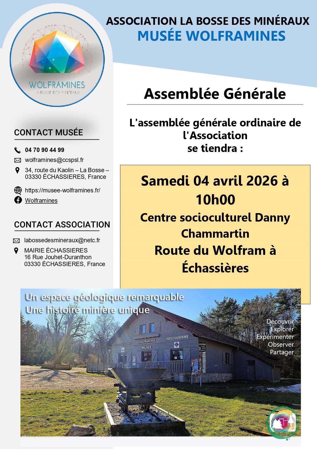 ASSEMBLÉE GÉNÉRALE DE L'ASSOCIATION LA BOSSE DES MINÉRAUX LE 04/04