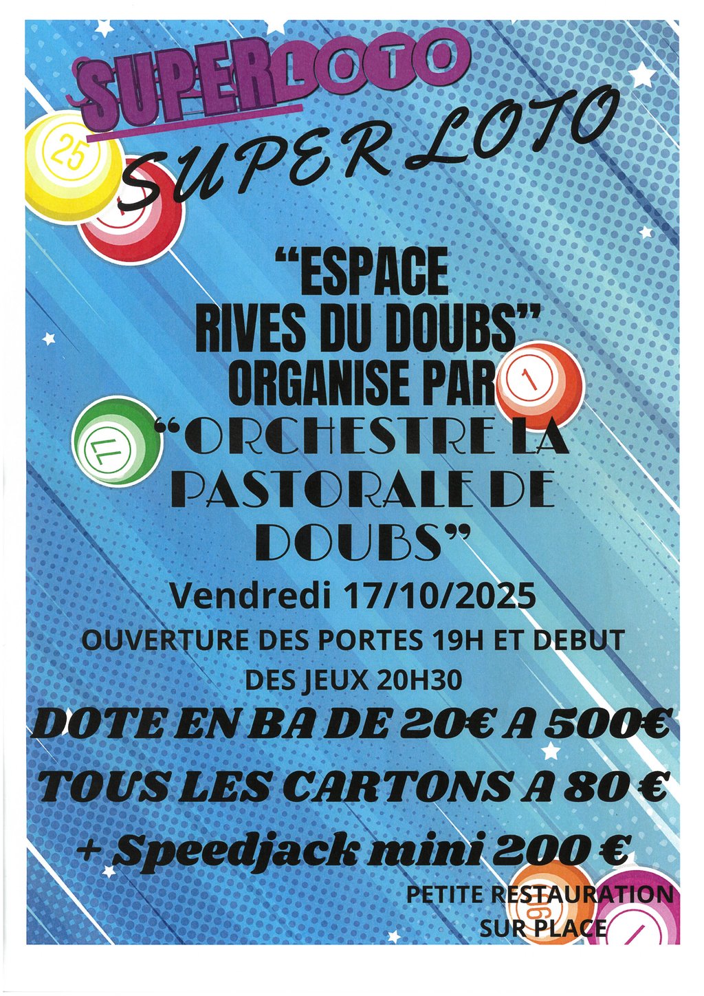 Super Loto organisé par l'orchestre d'harmonie La Pastorale de Doubs!