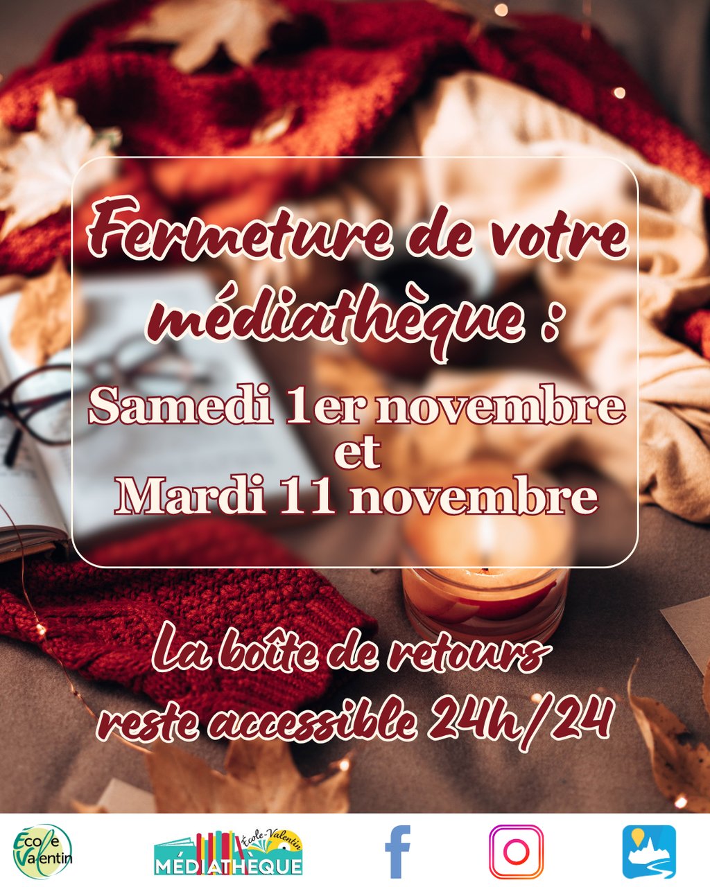 1ER ET 11 NOVEMBRE : FERMETURE DE VOTRE MÉDIATHÈQUE