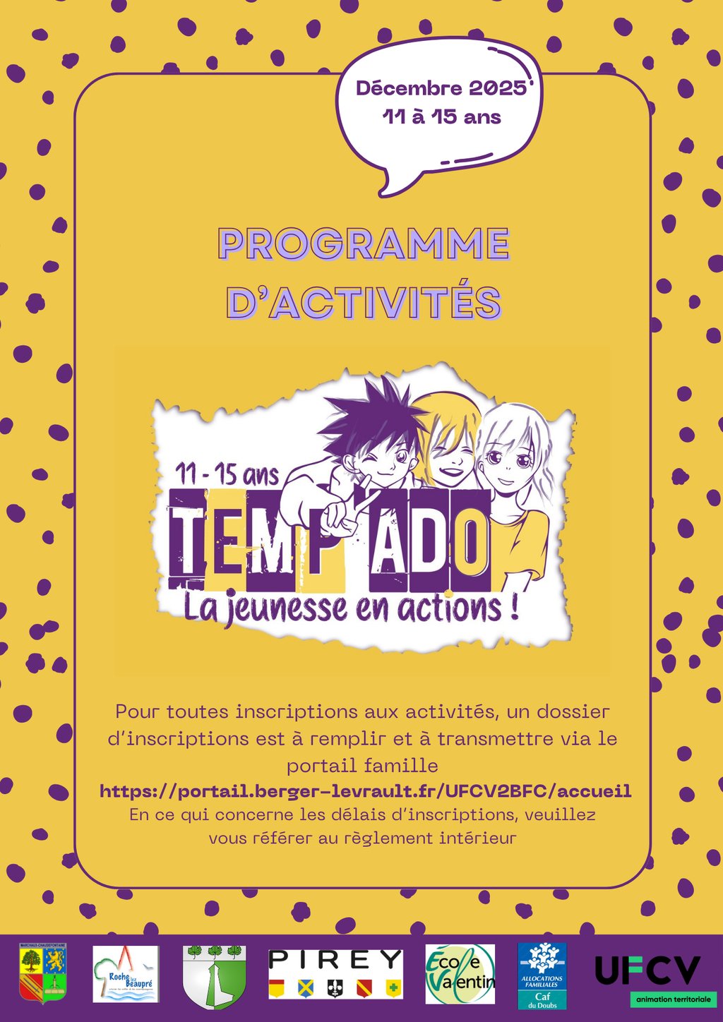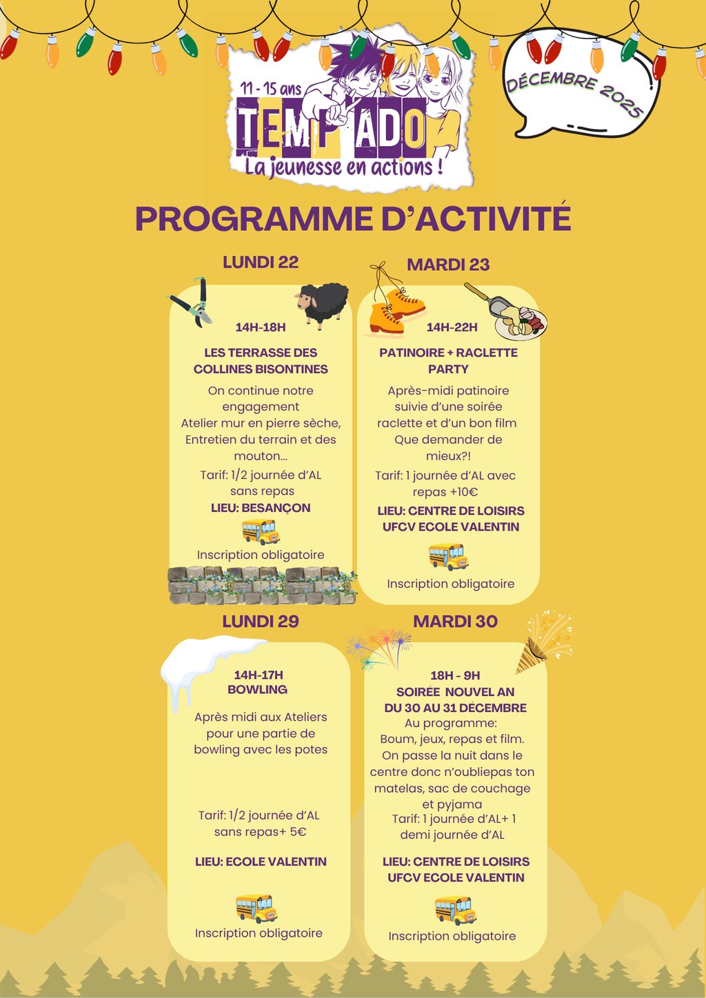 PROGRAMME DES VACANCES DE FIN D’ANNÉE DE TEMP’ADO