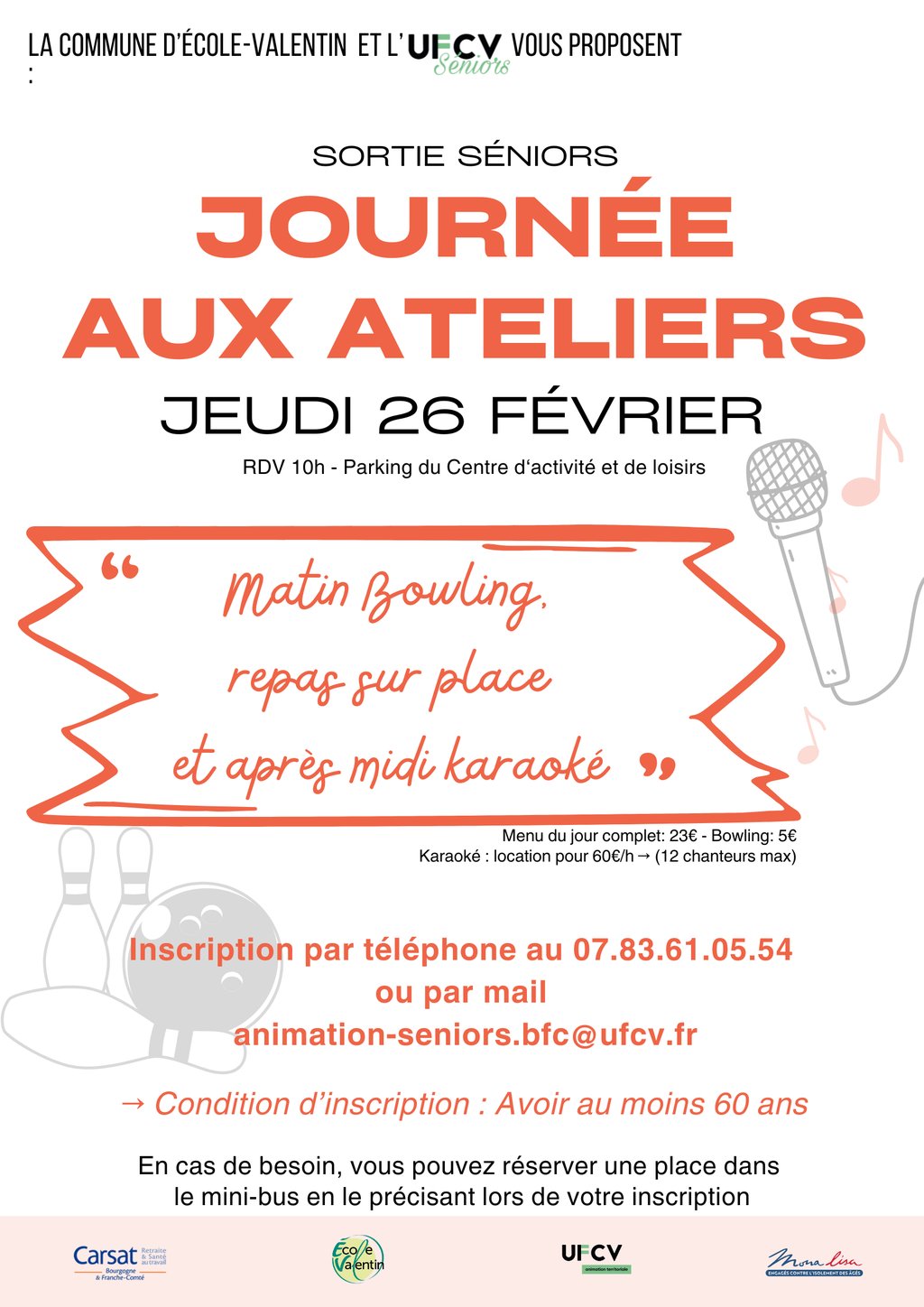 - Jeudi 26 février 2026 : Journée aux Ateliers : [ 🎳matin bowling 🍴 repas et après-midi 🎤 karaoké]