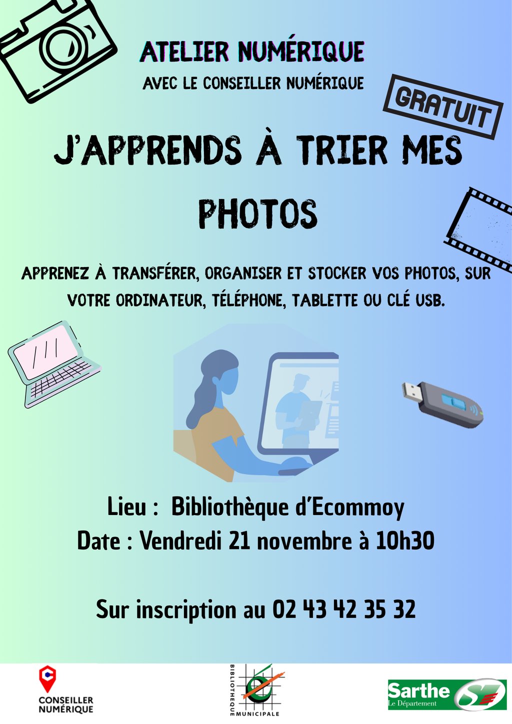 Inscription au 02 43 42 35 32 auprès des bibliothécaires.