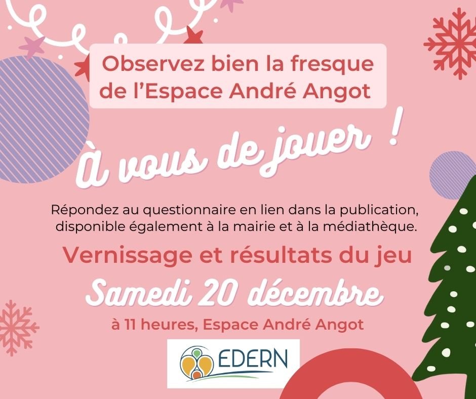 Alors que Noël arrive à grands pas, nous vous proposons un petit jeu pour découvrir la fresque de l'Espace André Angot, mais aussi en apprendre un peu plus sur l'histoire d'Edern.