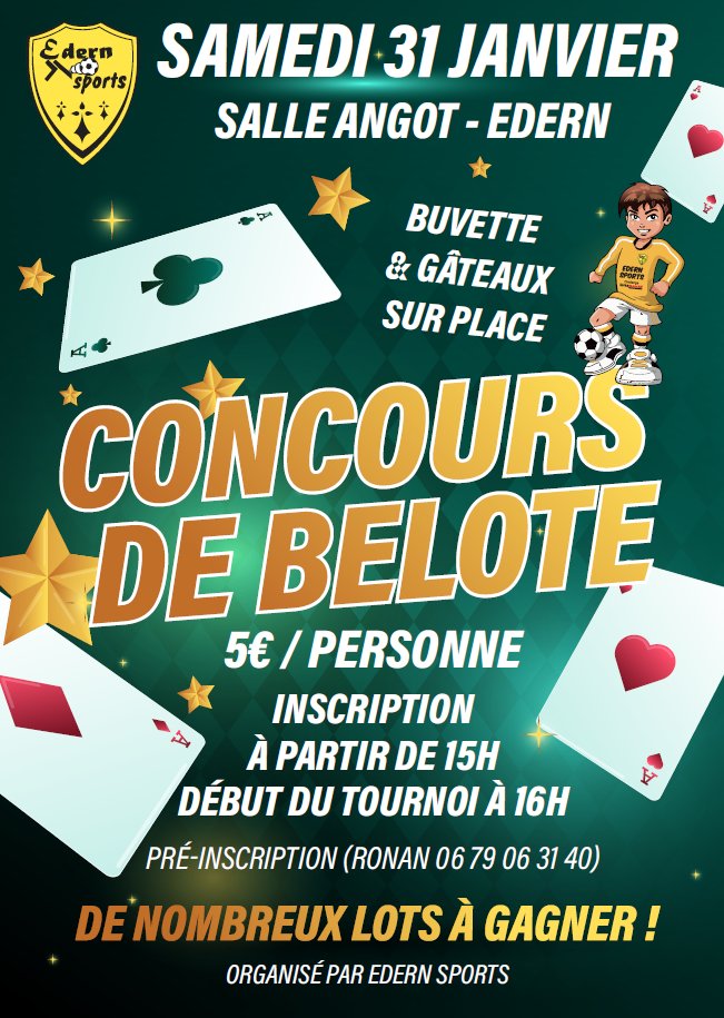 Edern Sports organise un concours de belote samedi 31 janvier à l'Espace André Angot.