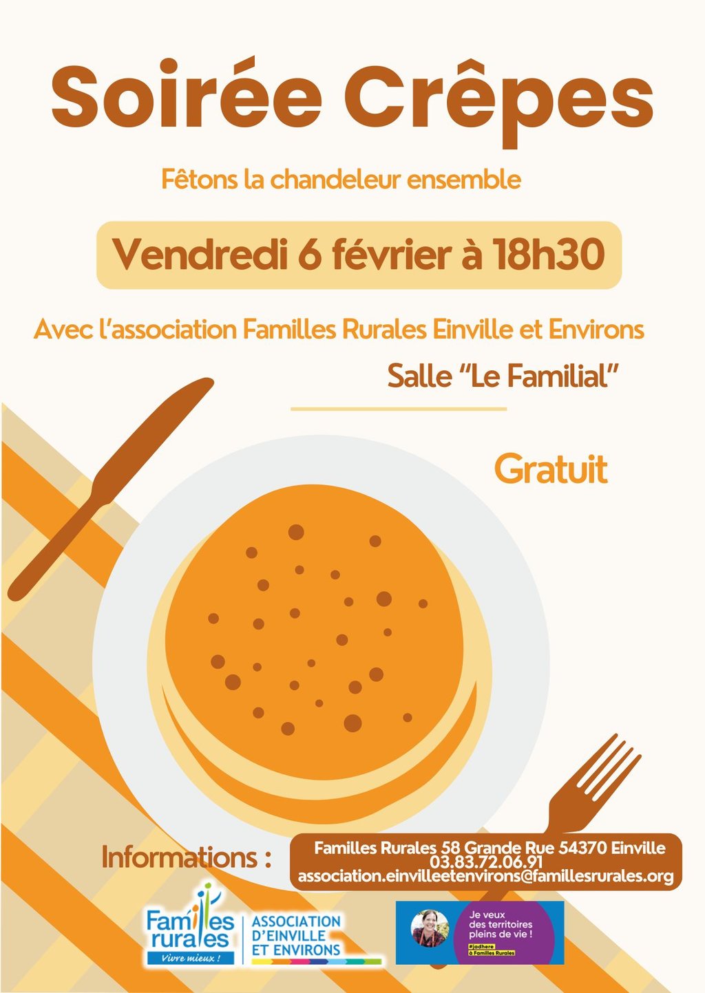 Venez partager un moment convivial autour d'une crêpe party vendredi 6 février à 18 h 30 au Familial à Einville.