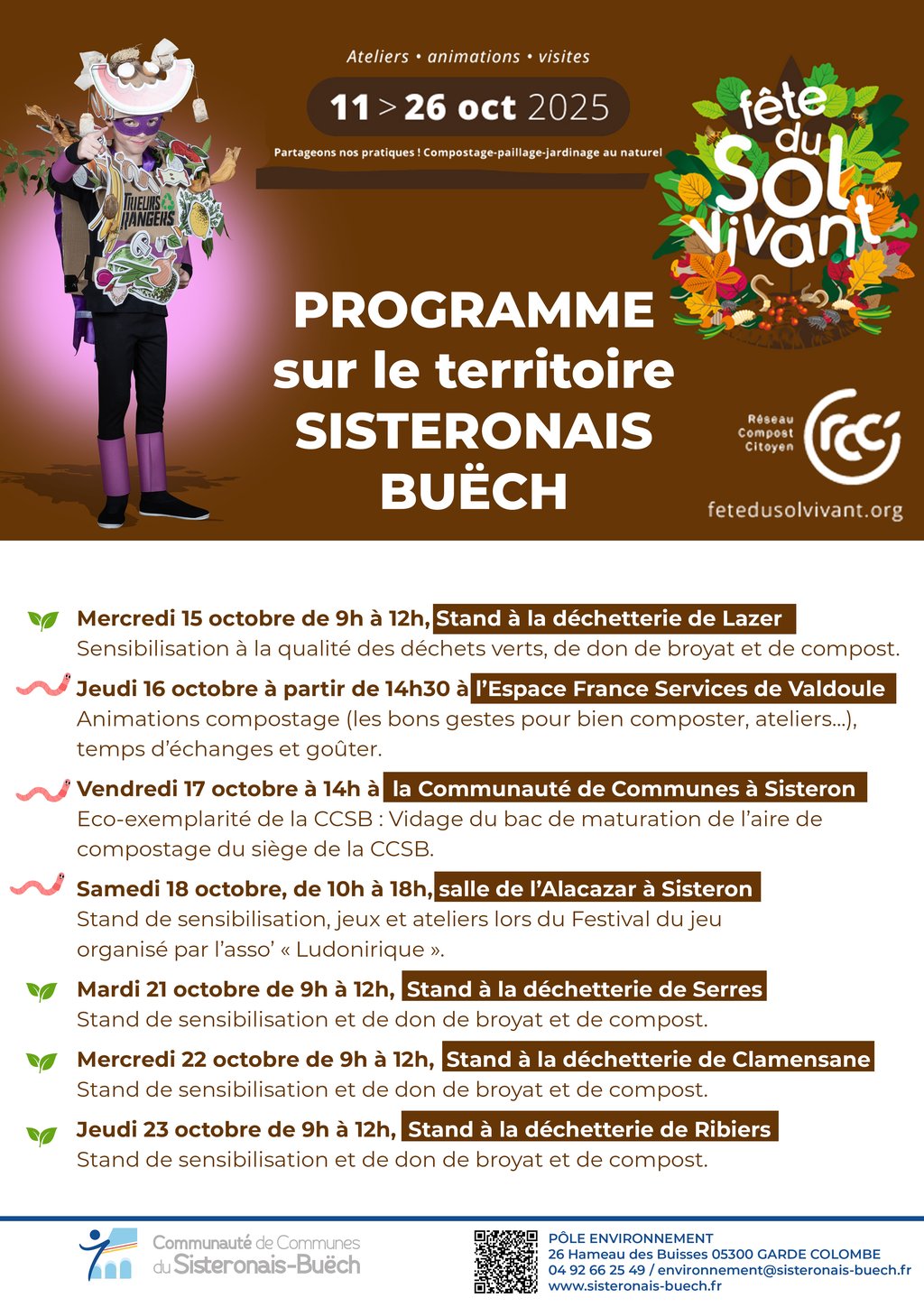 Du 15 au 23 octobre, retrouvez des animations, stands de sensibilisation, dons de compost et de broyat, ateliers compostage, jeux,… sur tout le territoire !