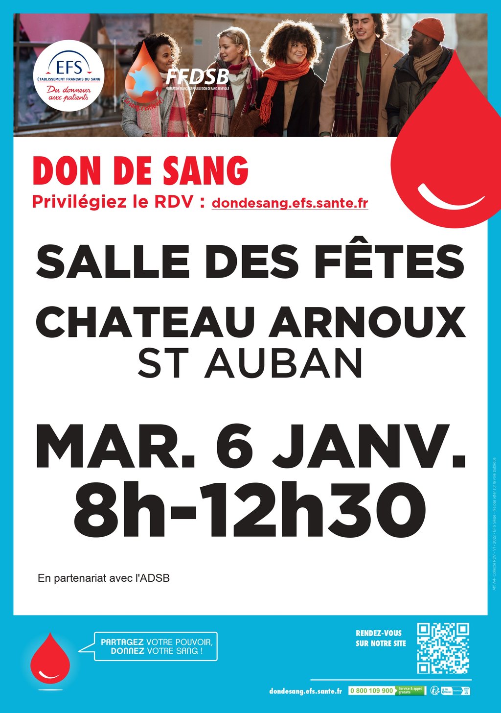 Mardi 6 janvier à la salle des fêtes de Château-Arnoux de 8h à 12h30