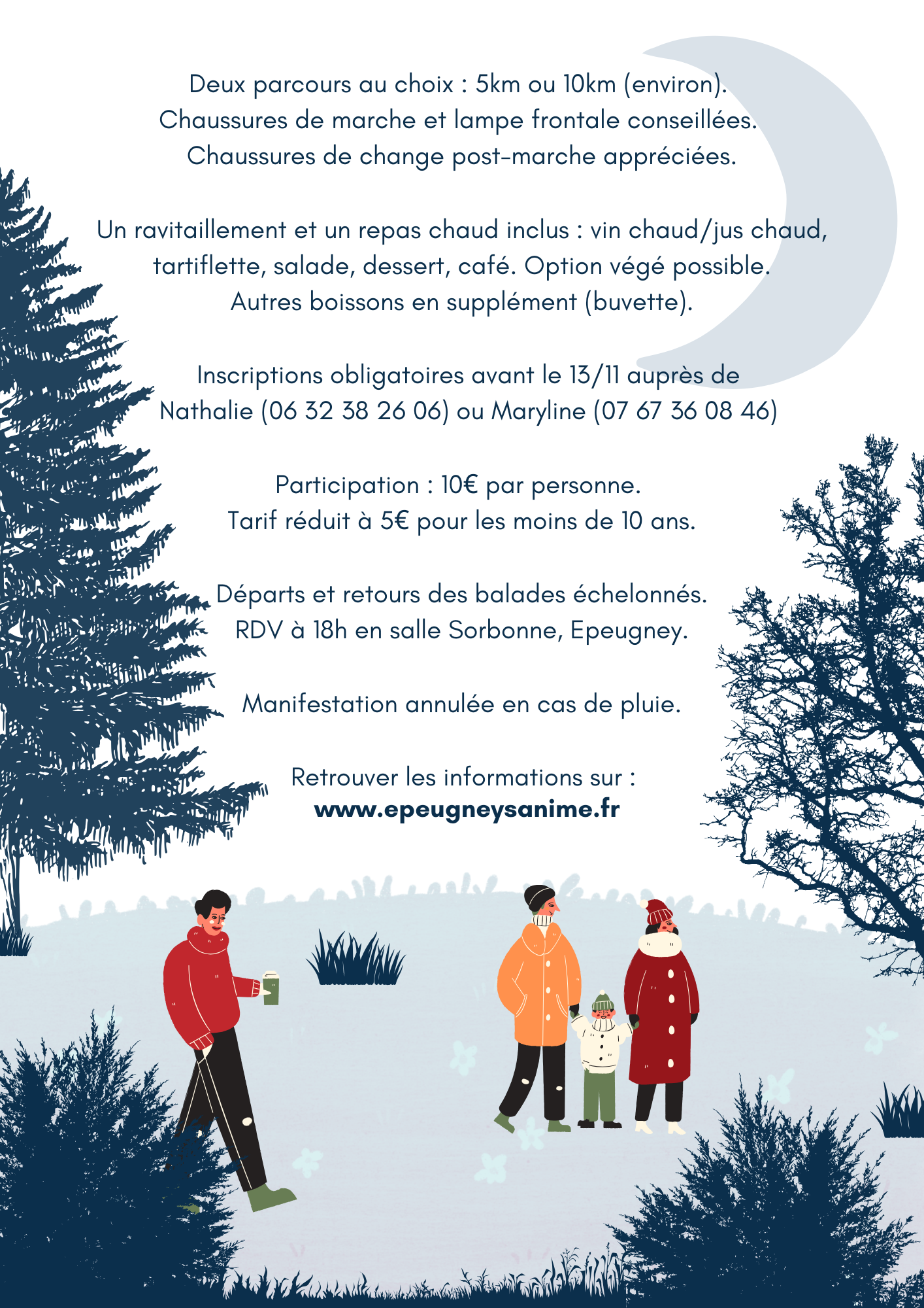 Epeugney s'anime vous donne rendez-vous le samedi 15 novembre, à 18h, en salle Sorbonne à Epeugney, pour le départ de la troisième édition de notre marche nocturne.