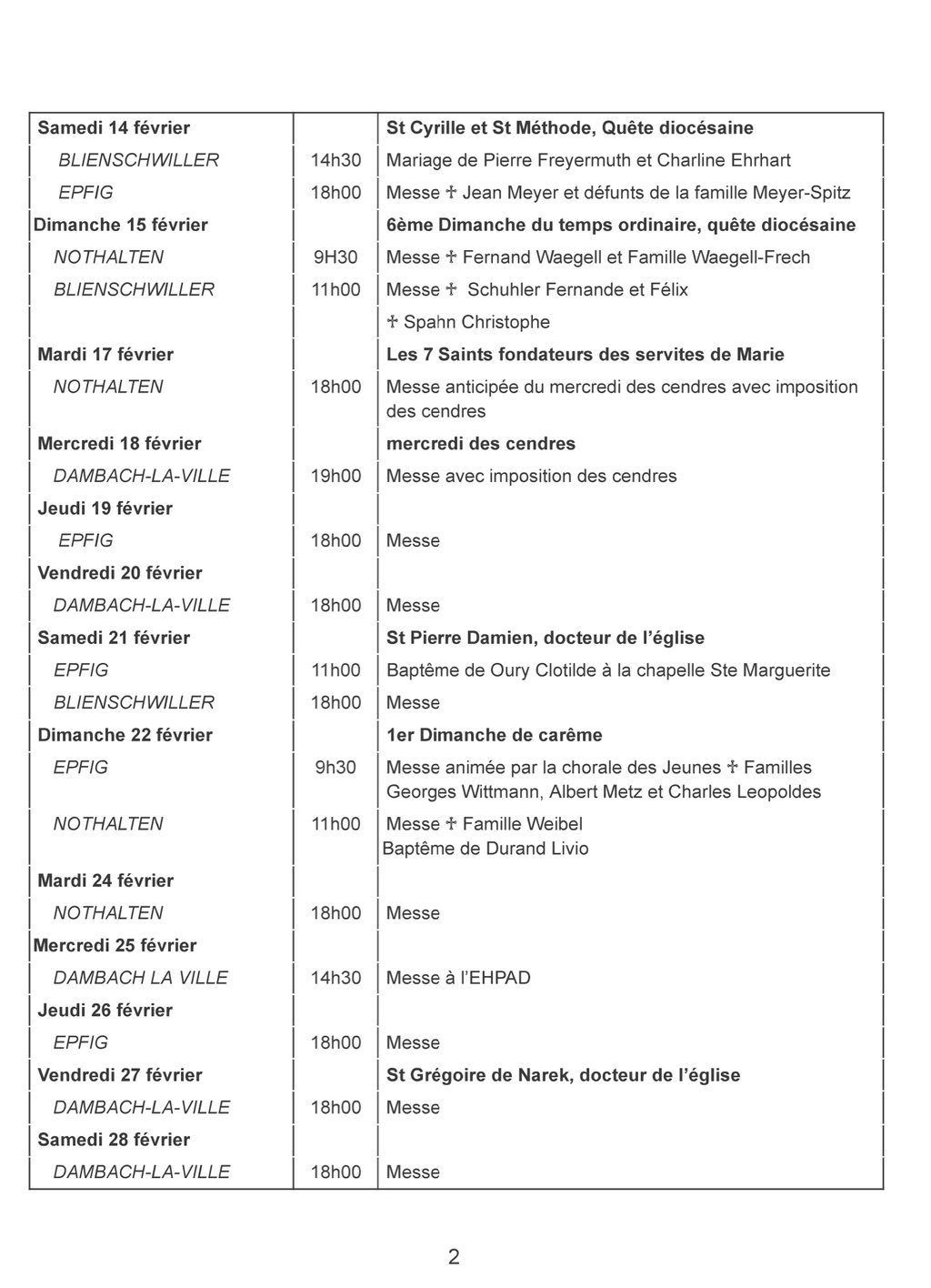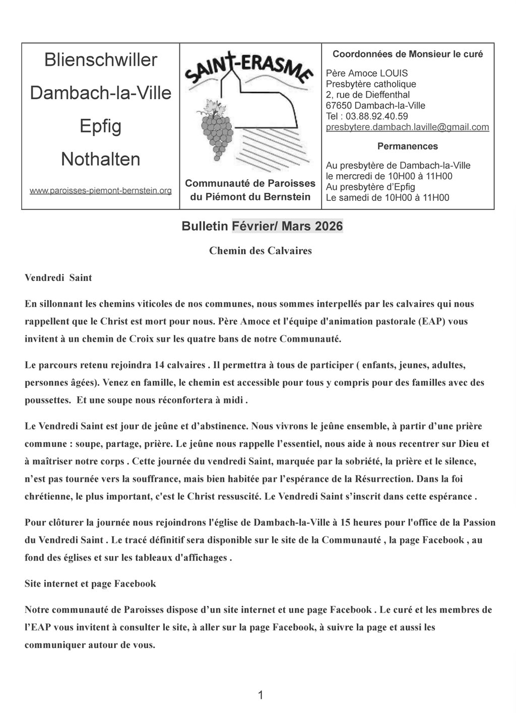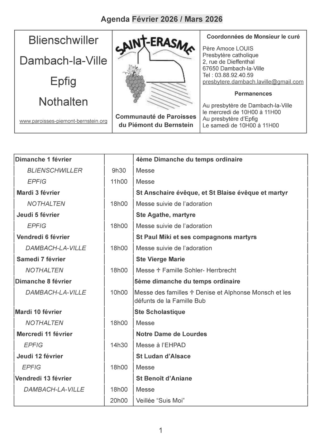Vous trouverez dans cette publication l'édito et les offices des mois de février et mars 2026.