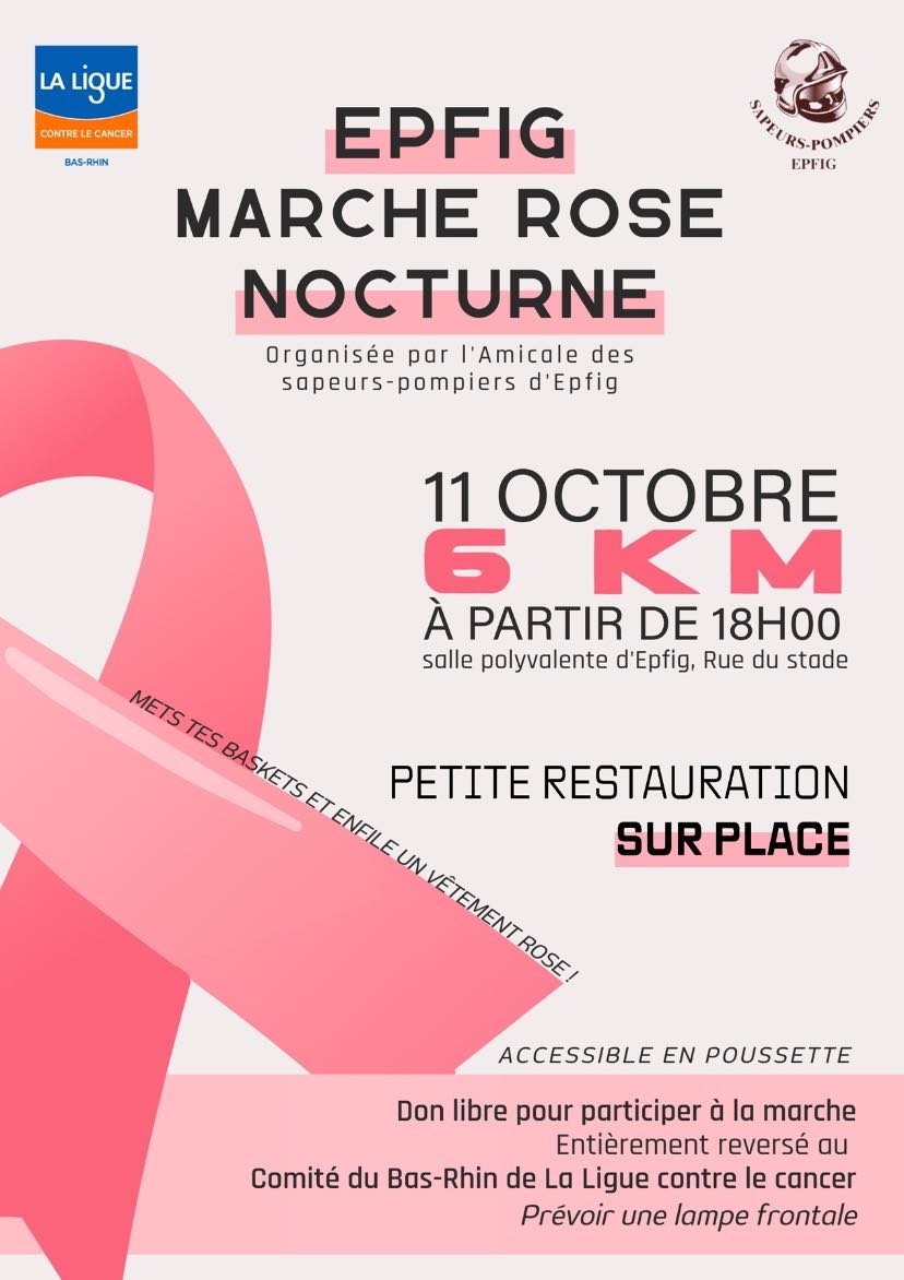 L'Amicale des Sapeurs Pompiers d'Epfig organise sa MARCHE ROSE NOCURNE.