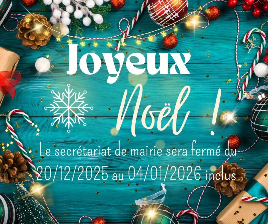 Le secrétariat de mairie sera fermé du 20/12/2025 au 04/01/2026 inclus