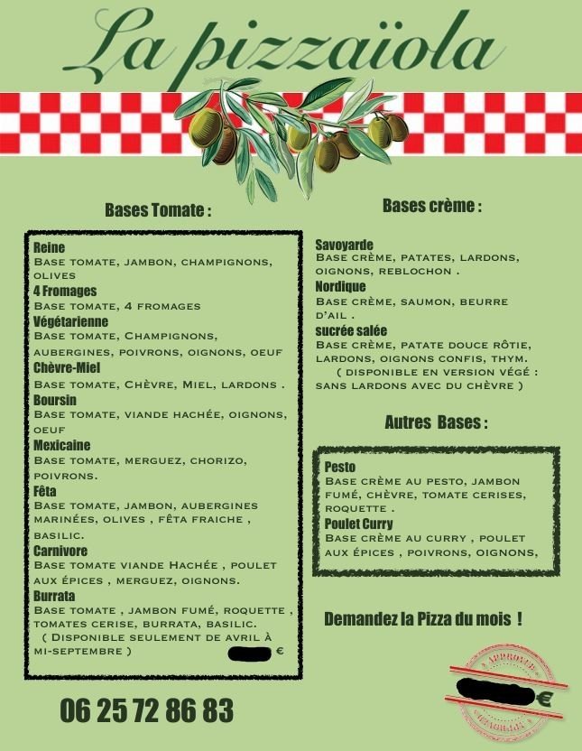 Camion à Pizza La Pizzaïola les vendredis soir sur la place de la mairie.