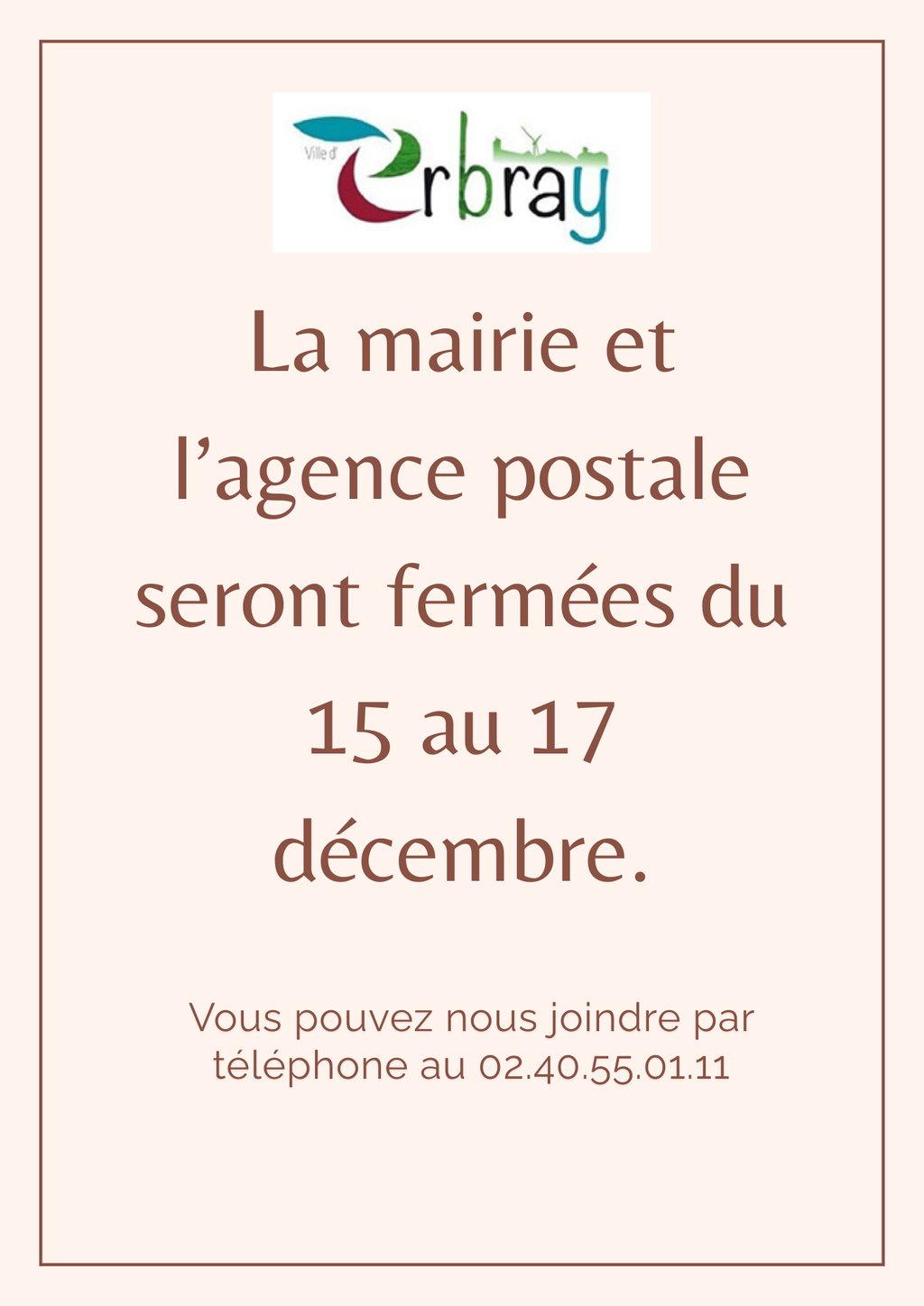 FERMETURE DE LA MAIRIE ET DE L'AGENCE...