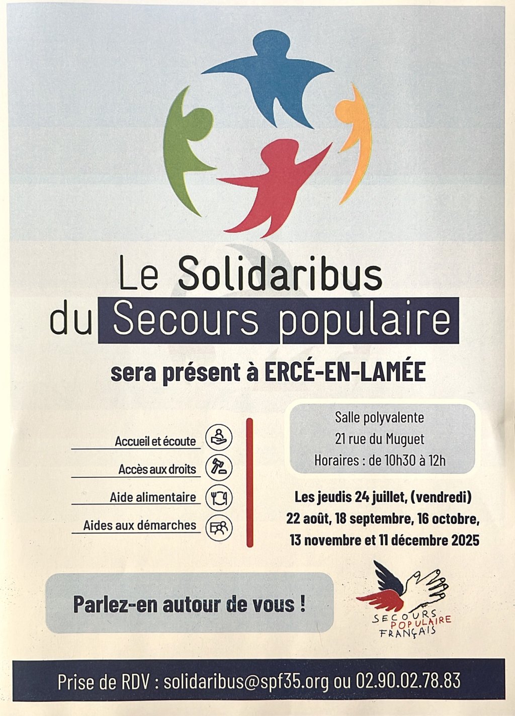 Le Solidaribus, antenne mobile du Secours populaire français en Ille-et-Vilaine, revient à Ercé-en-Lamée !