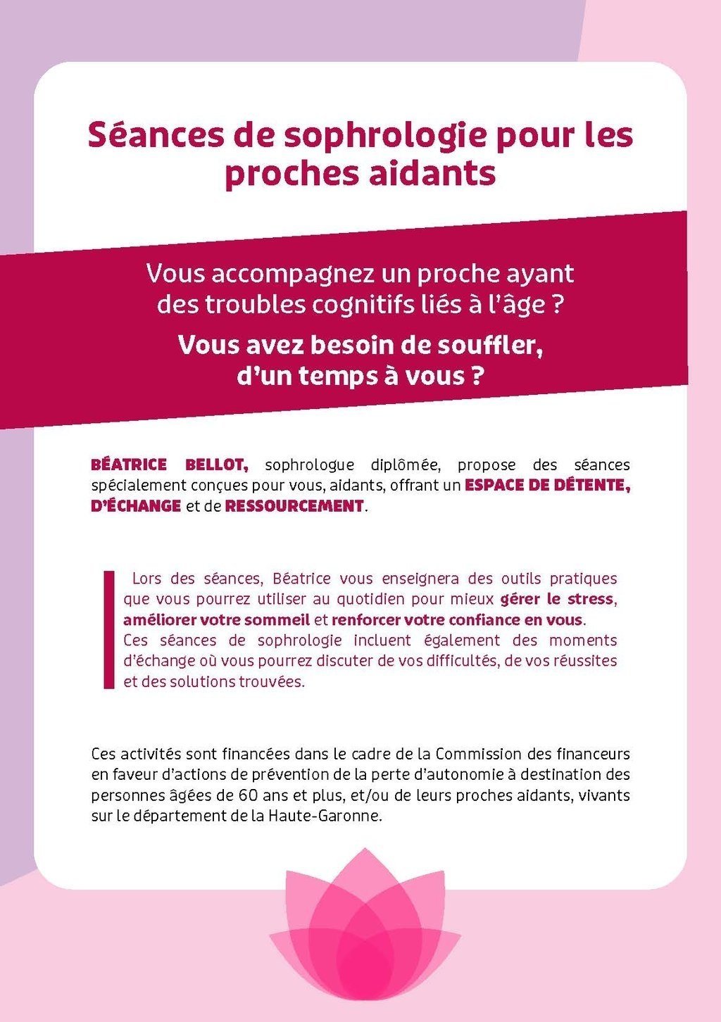 Pour mieux gérer le stress, améliorer votre sommeil et renforcer votre confiance en vous Béatrice BELLOT, sophrologue diplômée, vous propose un cycle de 12 séances de sophrologie.